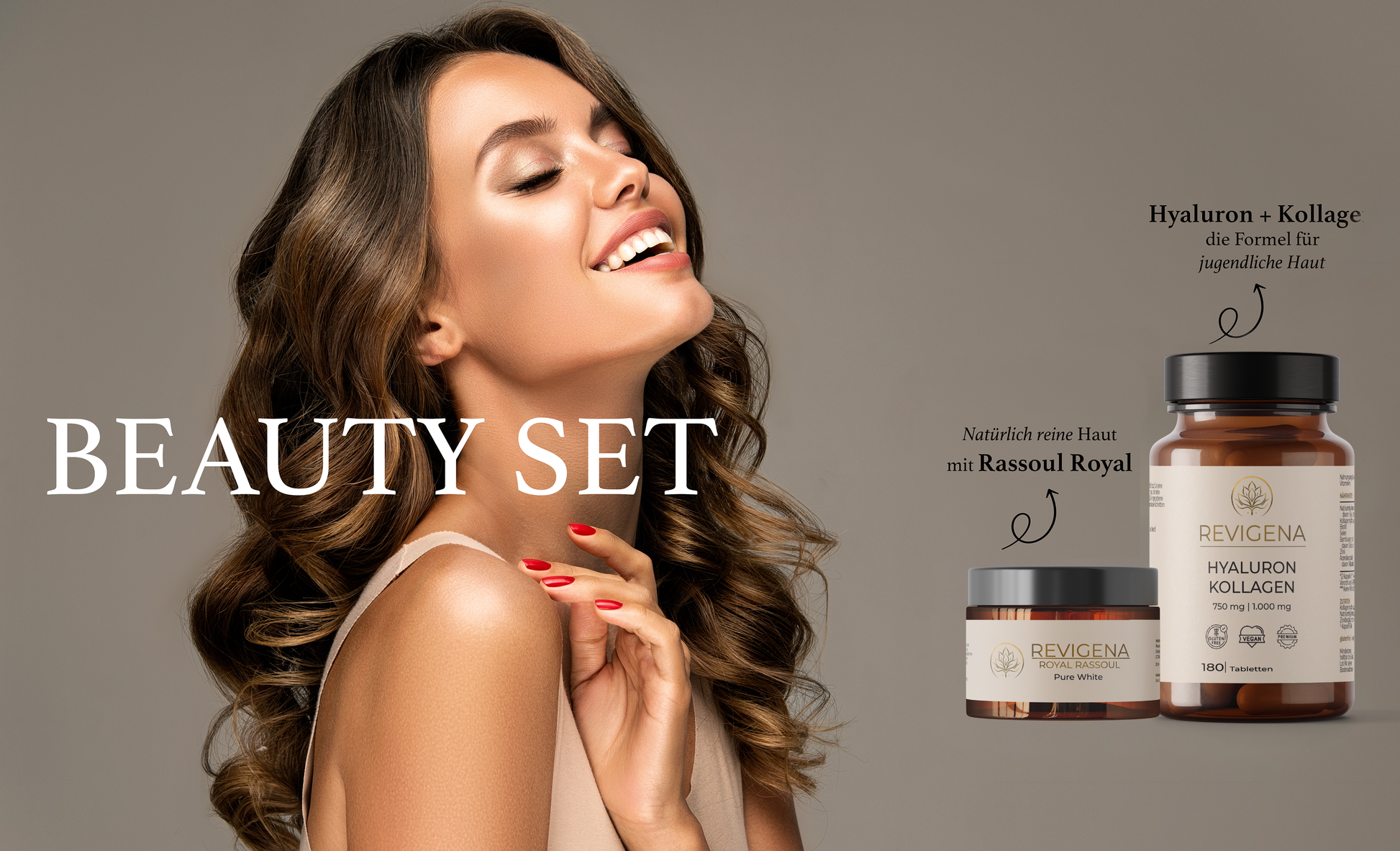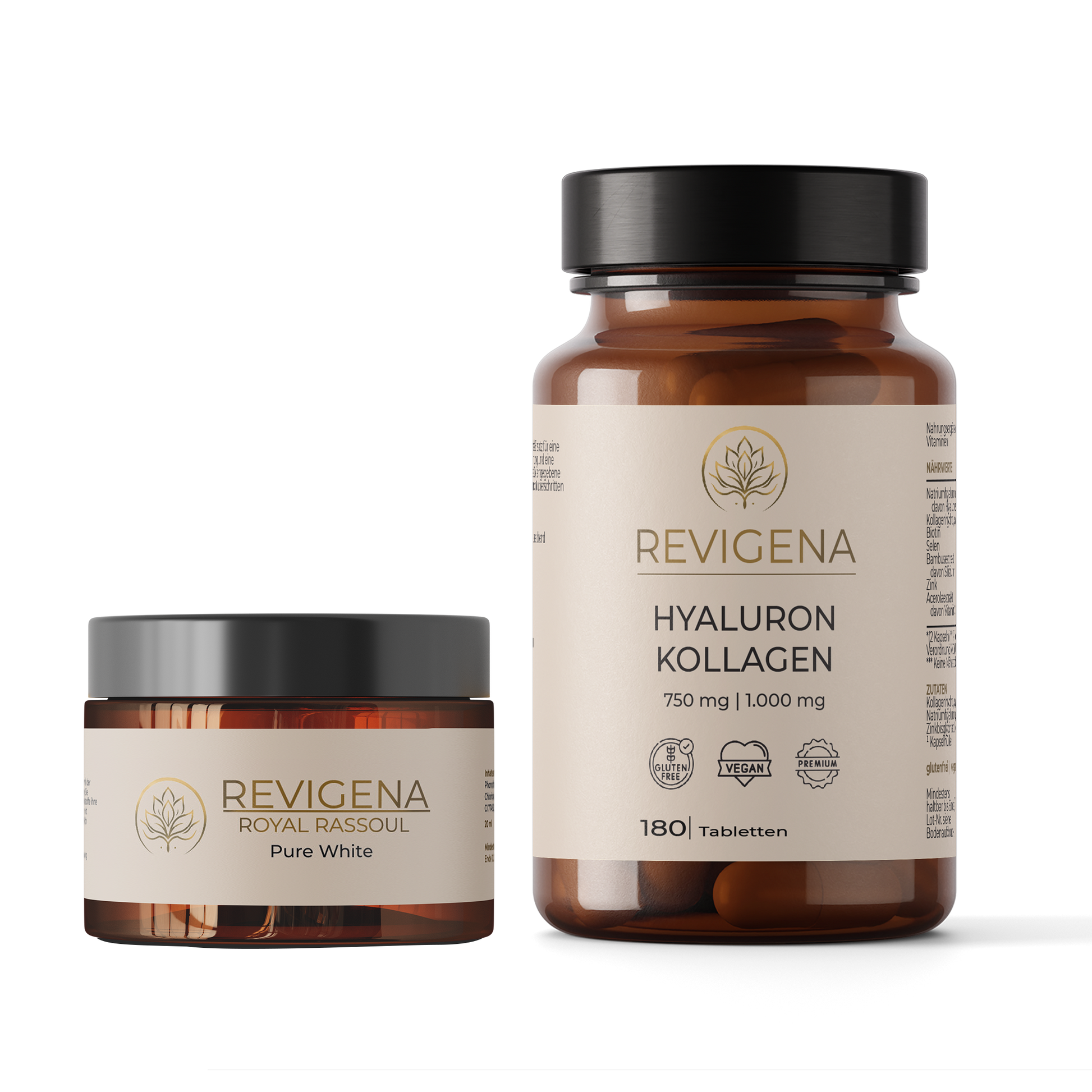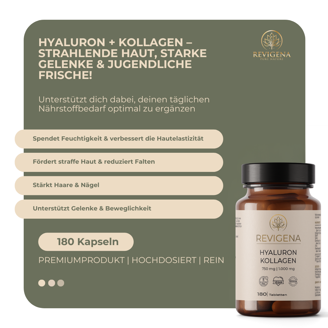 Revigena Beauty Set bestehenden aus unserer 100% natürlichen Reinigungspflege und Hyaluron+Kollagen