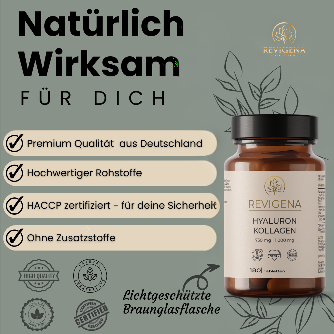 Mit zunehmendem Alter nimmt die körpereigene Produktion von Hyaluronsäure und Kollagen ab – mit sichtbaren und spürbaren Folgen: Die Haut verliert an Spannkraft, das Bindegewebe wird weicher, Gelenke können steifer wirken. Diese gezielte Kombination aus bioaktivem Kollagenhydrolysat und niedermolekularer Hyaluronsäure unterstützt den Körper bei genau diesen Prozessen – von innen und auf natürliche Weise.