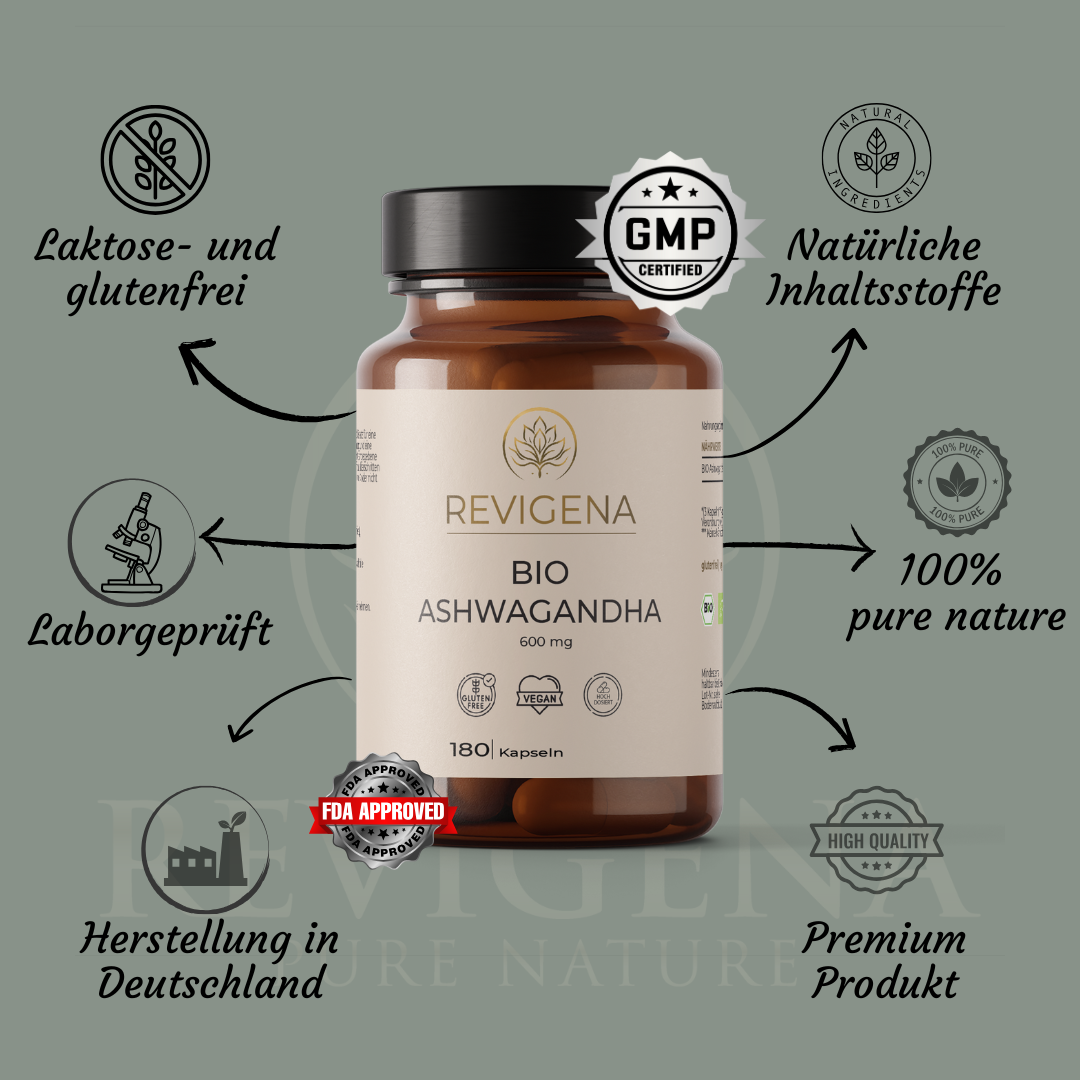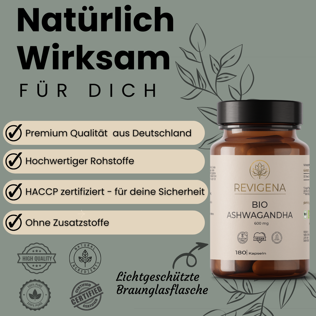 Der verwendete Extrakt ist bio-zertifiziert, standardisiert auf Withanolide, vegan und frei von Zusätzen. Hergestellt in der EU nach höchsten Qualitätsstandards.