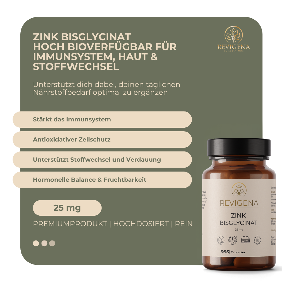 Zink Bisglycinat 25 mg – Hoch bioverfügbares Zink für Abwehr, Regeneration und Balance