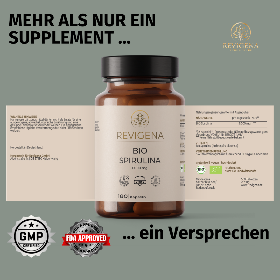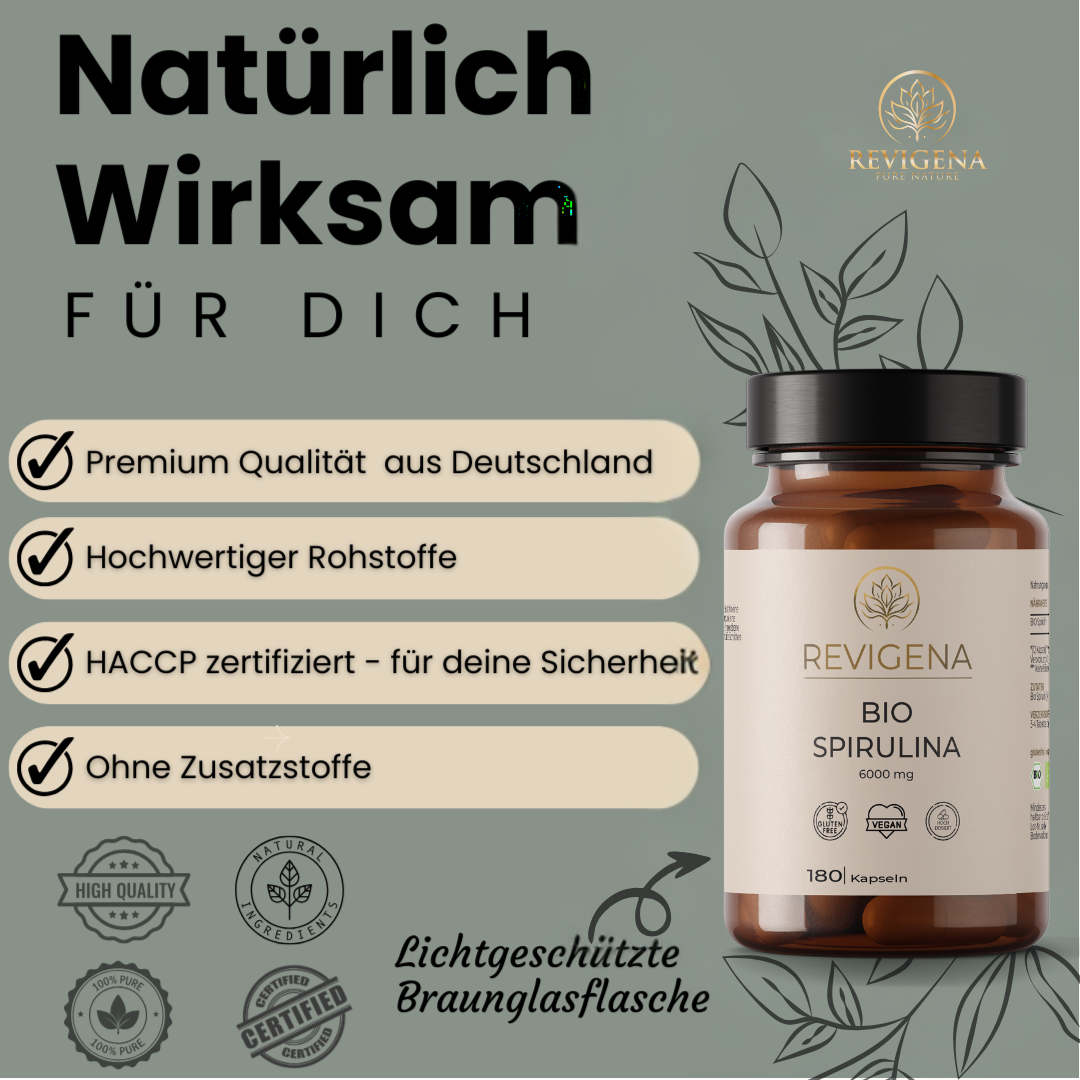 Besonders interessant ist Spirulina für Menschen mit pflanzenbasierter Ernährung, da sie zu den wenigen veganen Quellen für Vitamin B12 gehört. Zusätzlich unterstützt Eisen den Sauerstofftransport im Körper, während Chlorophyll die Zellen mit Sauerstoff versorgen und entgiftend wirken kann.