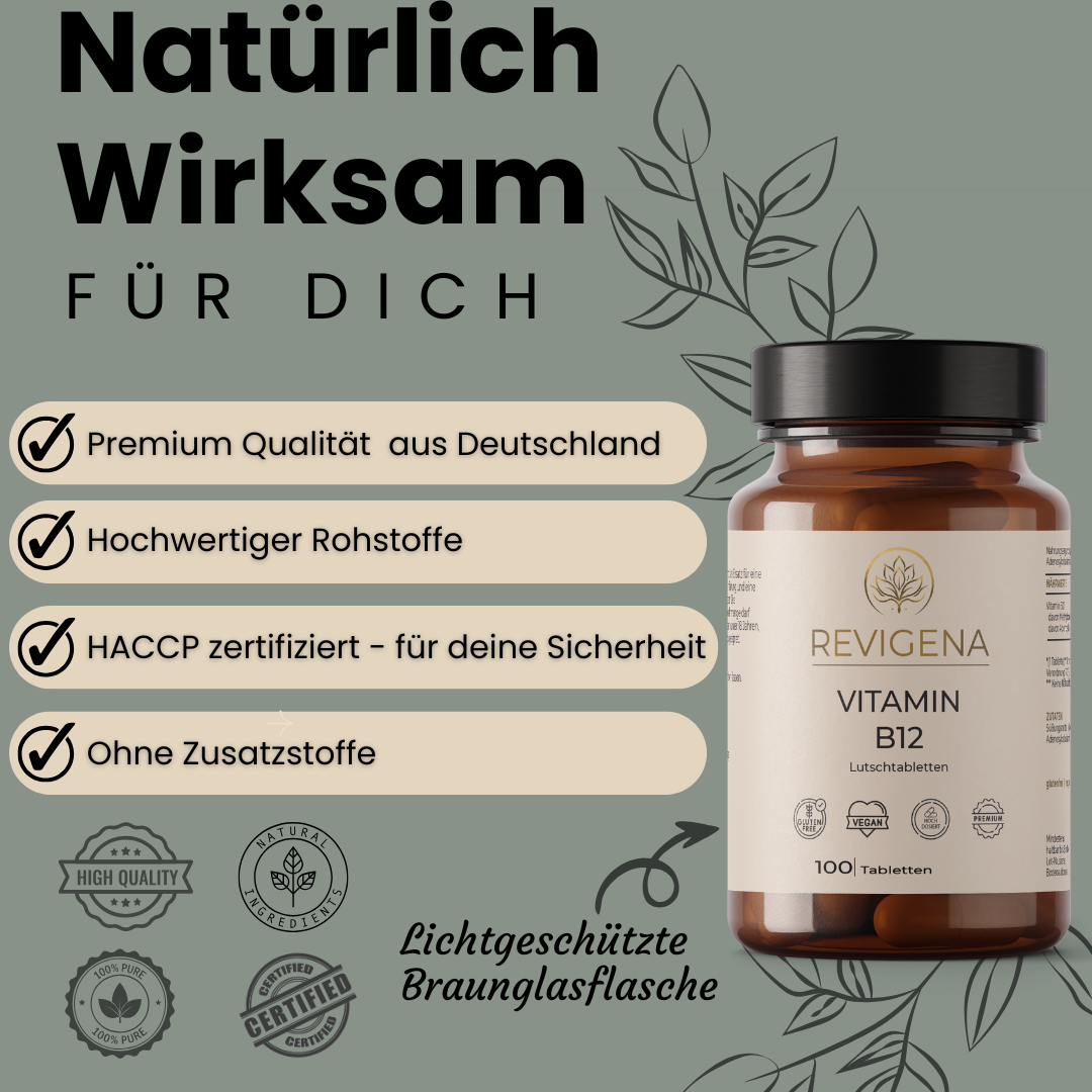 Unsere Rezeptur enthält Methylcobalamin, die bioaktive Form von Vitamin B12, die vom Körper direkt verwertet werden kann – ohne Umwandlungsverluste. Mit 500 µg pro Tagesdosis ist dieses Produkt ideal zur Auffüllung von Speicherdepots und bei erhöhtem Bedarf.