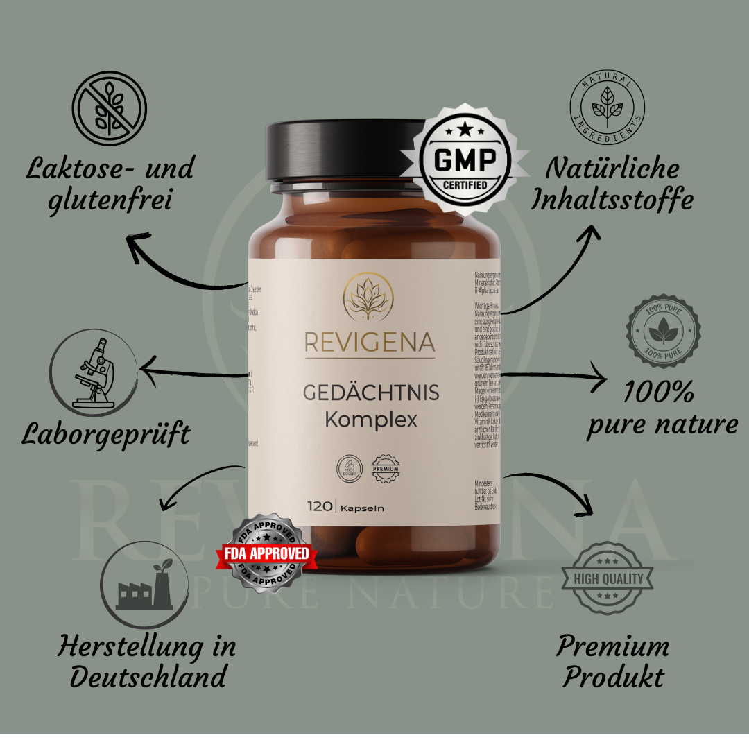 Mental performance isn't a matter of chance – it requires the right support. The Memory Complex combines plant extracts like Ginkgo biloba, Brahmi (Bacopa monnieri), and Rhodiola rosea with nerve-relevant micronutrients such as B vitamins, zinc, and phosphatidylserine. This combination supports your mental resilience and helps you stay focused and alert, even during demanding periods.
