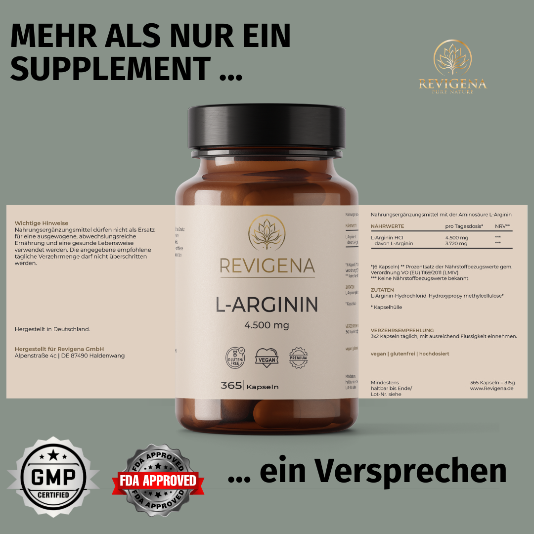 Our L-Arginine Forte contains 4500 mg of pure L-Arginine HCl per daily dose – high quality, without additives, and optimally bioavailable.