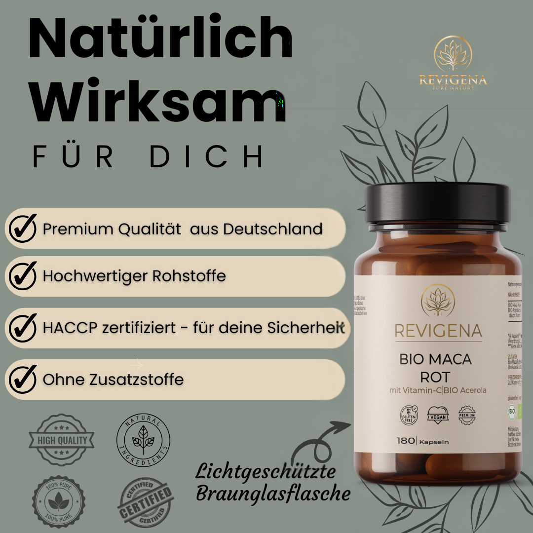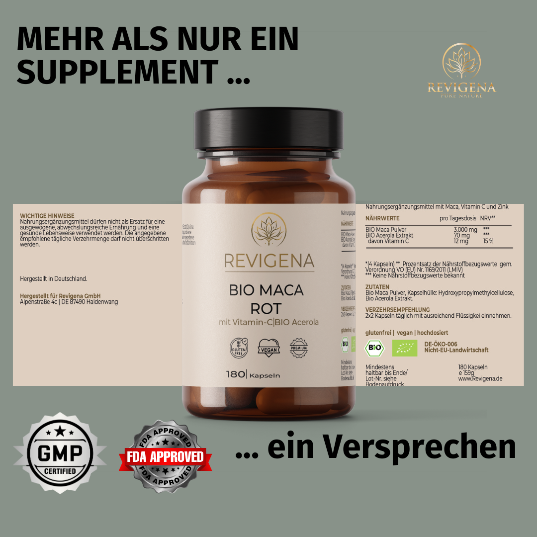 Red maca contains natural secondary plant compounds such as macamides and glucosinolates, which are associated with hormonal balance and adaptogenic effects. As an adaptogen, maca can help make the body more resilient to stress and strain – both physical and mental.