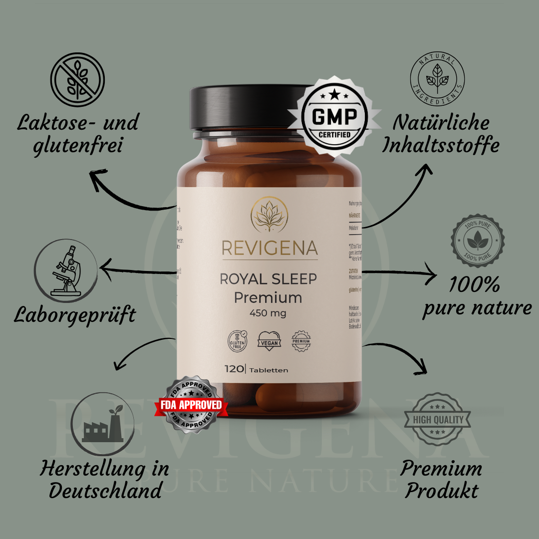 Royal Sleep delivers 1 mg of pure melatonin per serving – the amount that, according to EU regulations, contributes to reducing the time it takes to fall asleep. Taking it before bed signals to the body that it's "night mode" – completely without synthetic sleep aids or after-effects.