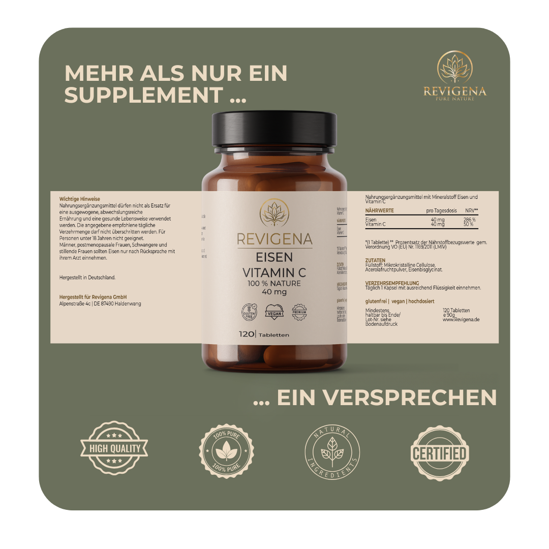 Our product combines iron in a well-tolerated form with vitamin C , which has been proven to improve iron absorption in the body. This combination promotes utilization and ensures optimal bioavailability – without stomach upset.