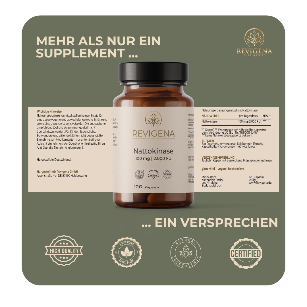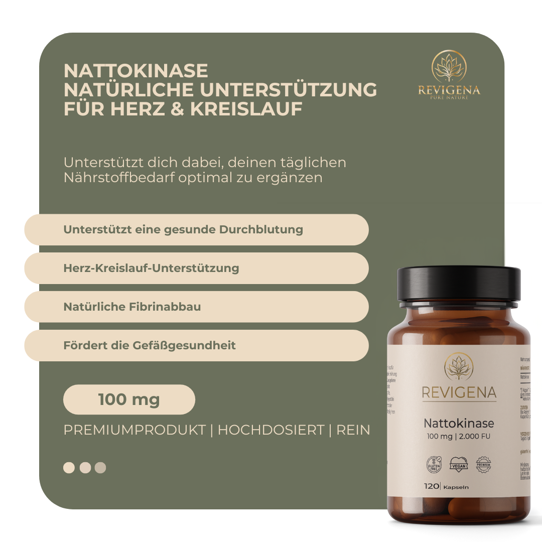 Nattokinase is a natural enzyme produced during the fermentation of soybeans by the bacterium Bacillus subtilis – a traditional method in Japanese cuisine. This enzyme has been the subject of scientific research for decades and is known for its vascular-supporting properties.